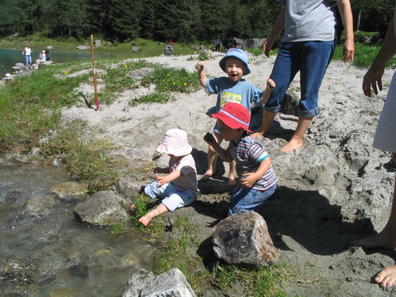Die Woche Urlaub in den Bergen war super spannend. Meine Eltern meinten zwar, wir wären dort schon mal gewesen, aber ich konnte mich an die Berge, Kühe, Katzen und tollen Maschinen gar nicht so recht erinnern. Am tollsten war aber, daß immer was los war. Am Anfang war ich noch ziemlich überrumpelt, wenn die anderen Kinder an mir gezerrt oder mir die Spielsachen weg genommen haben. Dann hab ich aber gemerkt, daß ich das alles nicht nur über mich ergehen lassen muß und ich das auch kann. Hat am Ende vor allem bei der kleinen Anna gut funktioniert ;).